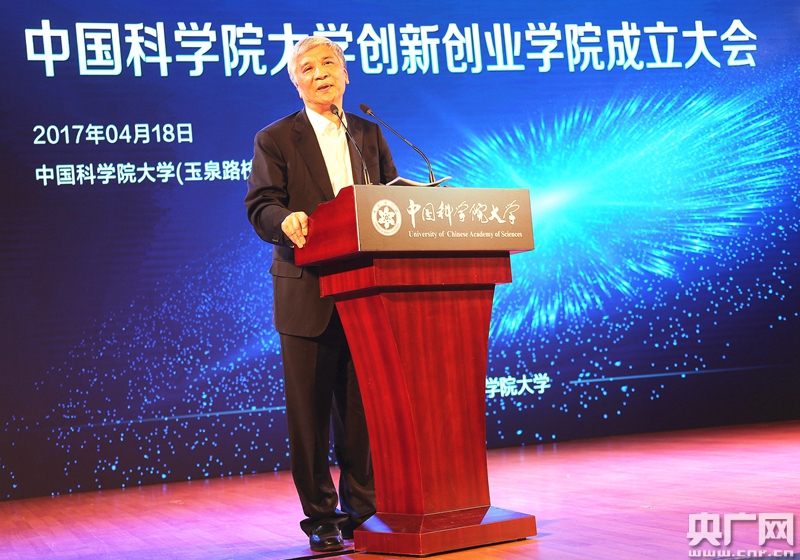 中科院副院長(zhǎng)、國(guó)科大校長(zhǎng)丁仲禮院士在中國(guó)科學(xué)院大學(xué)“創(chuàng)新創(chuàng)業(yè)學(xué)院”成立大會(huì)上致辭