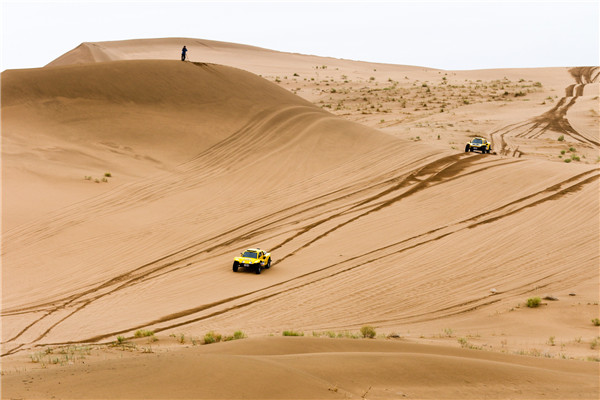 第13賽段從阿拉善右旗至中衛(wèi),賽段全長690.31公里,其中特殊賽段318.66公里。當天的賽段由兩部分組成,前半段是由美麗的沙丘,為賽員和攝影師帶來無限的樂趣。而后半程高難度的沙丘要找到正確的航向?qū)⒖简烆I航的能力。