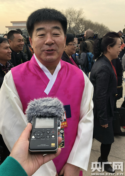 吉林代表團朝鮮族代表李圣范表示,此時此刻心情非常激動。他表示,期待農(nóng)村振興戰(zhàn)略有更好的路徑,把農(nóng)村變得更美、農(nóng)民變得更富、農(nóng)業(yè)更發(fā)達。