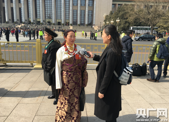 西藏代表團藏族代表澤仁永宗是西藏昌都市基層醫(yī)務工作者。她表示,作為一名新當選的人大代表,肩負著基層醫(yī)療事業(yè)的重任。她說:“我來之前和同事們一起做了一些調(diào)研。這次我?guī)砹岁P于加強西藏農(nóng)村醫(yī)療基礎設施、加強大學生就業(yè)渠道等幾個議案,希望能夠落實,這也是我們大家的心聲!边@幾年基層的醫(yī)療方面有了很多大的進步,如設施的配備、人才的引進等,但還需要進一步完善。