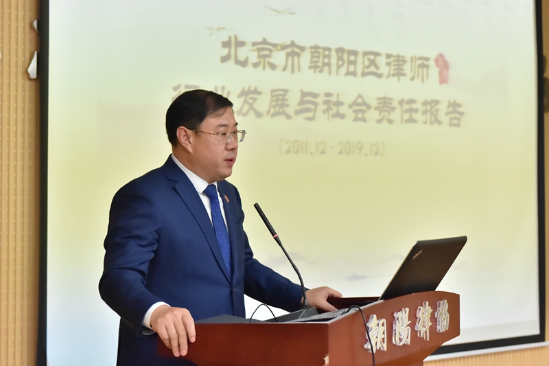 《報告》通過總結(jié)朝陽律師踐行社會責任情況,凝練朝陽律師價值觀,展望新時代背景下朝陽區(qū)律師事業(yè)發(fā)展新思路、新布局!秷蟾妗诽岢,2020年,朝陽律協(xié)將進一步加強朝陽區(qū)律師行業(yè)黨建;繼續(xù)鞏固、提高律師事業(yè)的服務(wù)和管理水平;深入推進朝陽律師品牌建設(shè),繼續(xù)擴大在國內(nèi)外的行業(yè)影響力。為實現(xiàn)中華民族偉大復(fù)興的中國夢作出律師行業(yè)應(yīng)有的貢獻。