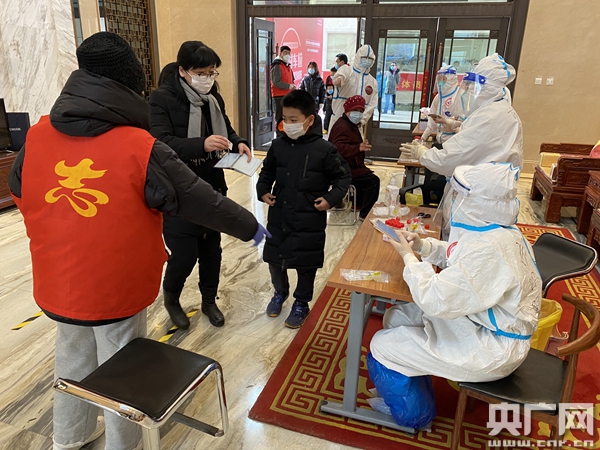 記者在現(xiàn)場(chǎng)看到,為避免群眾長時(shí)間等待,小區(qū)設(shè)置了組織區(qū)、候檢區(qū)和檢驗(yàn)區(qū)三個(gè)區(qū)域,在工作人員的引導(dǎo)下,居民按照選定的時(shí)間到達(dá)現(xiàn)場(chǎng),排隊(duì)檢測(cè)。