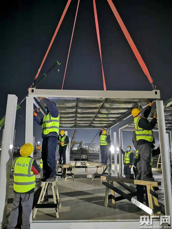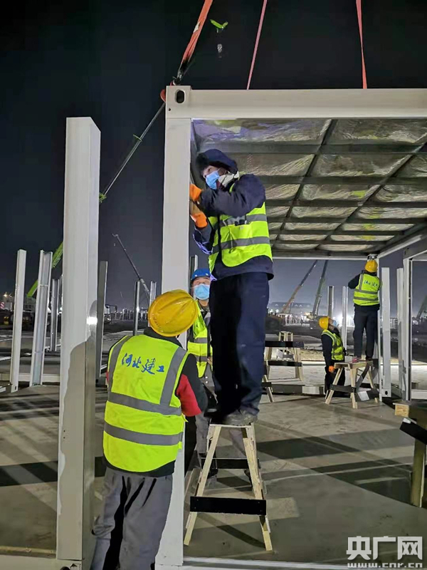 目前,施工總?cè)藬?shù)已經(jīng)超過1000人,多家大型建筑公司的施工隊在現(xiàn)場24小時不間斷施工。施工人員張朋告訴記者,石家莊要求全員居家隔離,他是13日接到公司的緊急通知后,和工友們迅速集結(jié)到了施工現(xiàn)場。