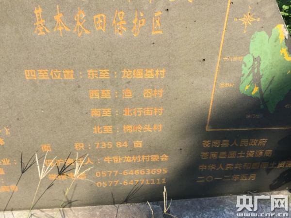 據(jù)村口不遠處的一塊石碑上寫著“蒼南縣金鄉(xiāng)鎮(zhèn)牛臥龍村基本農(nóng)田保護區(qū)”,面積735.84畝,村民告訴記者,征地范圍恰好在其中。記者來到金鄉(xiāng)鎮(zhèn)土管所,查詢結果顯示被征用土地的是耕地和林地,但已經(jīng)辦理了土地性質變更手續(xù),成為建設用地。