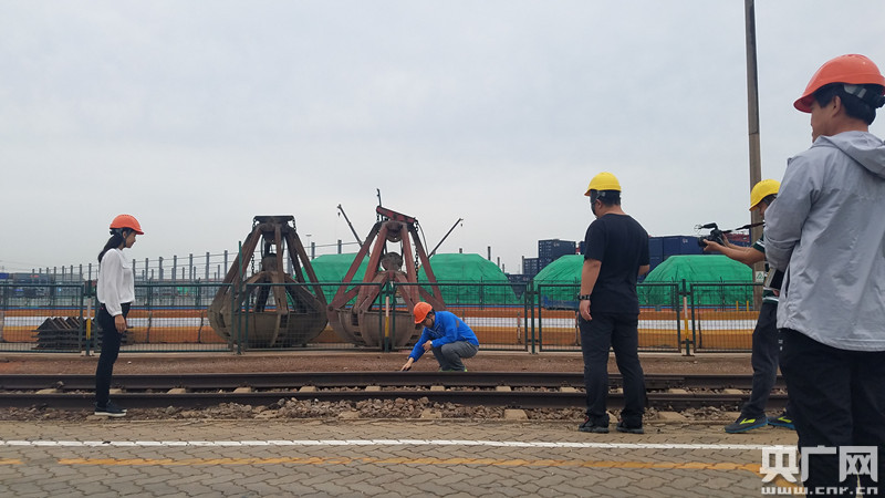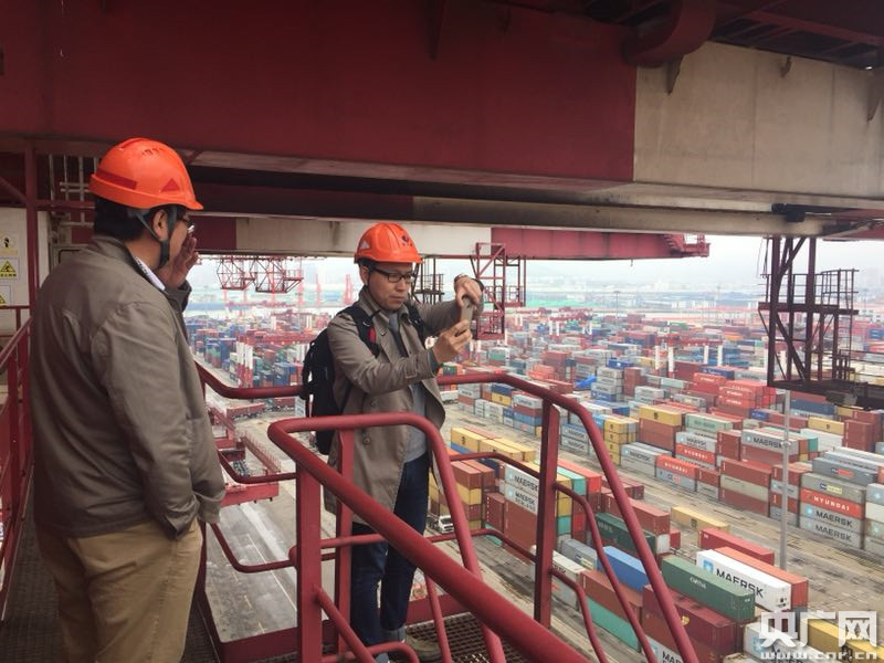 央廣記者柴安東(右一)在青島港采訪