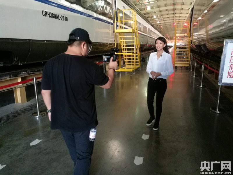 央廣記者侯艷和央視攝像張鵬在中車四方公司拍攝