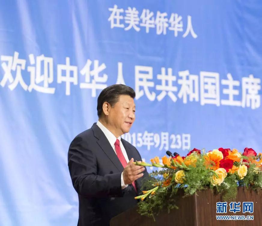 2015年9月23日,國家主席習近平和夫人彭麗媛在西雅圖出席美國僑界歡迎招待會。習近平發(fā)表講話。新華社記者 黃敬文 攝