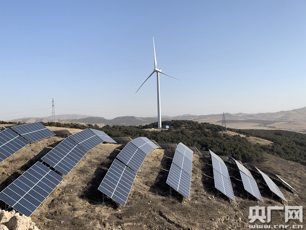 光伏板與旁邊的林地(央廣記者 任夢巖攝)