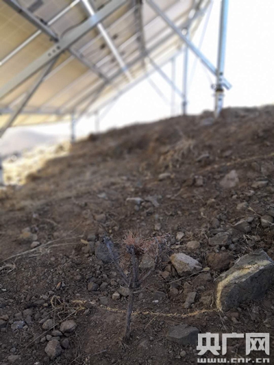 光伏板下僅存的樹苗(央廣記者 任夢巖攝)