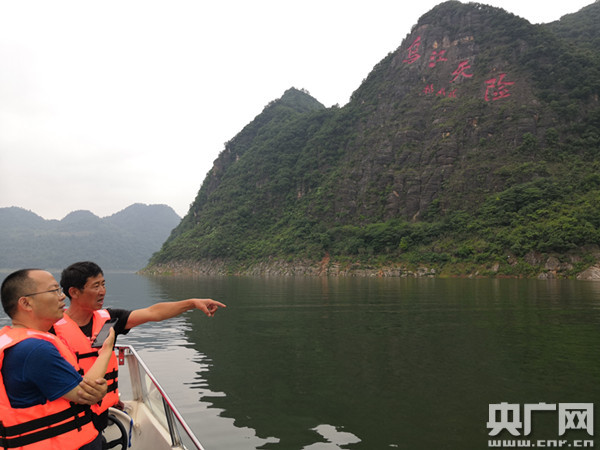 烏江江界河,對面白色山崖里的小道就是紅軍當(dāng)年最早下到江邊的老路。(中央廣播電視總臺央廣記者 陳屹 攝)