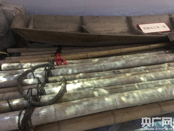 1935年1月,紅軍搶渡烏江時使用的雙層竹筏。(中央廣播電視總臺央廣記者 陳屹 攝)