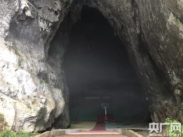 張開學(xué)告訴記者:“當(dāng)時(shí)體育器材什么都沒有,就只有這么一個(gè)溶洞。最開始只想把它填平,后來發(fā)現(xiàn)正好可以搞塊籃球場!