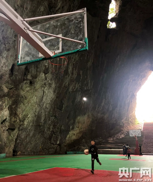 家門前的溶洞籃球場,每一次運(yùn)球、投籃都帶來回聲,這是夢想和希望的堅(jiān)定回應(yīng)。