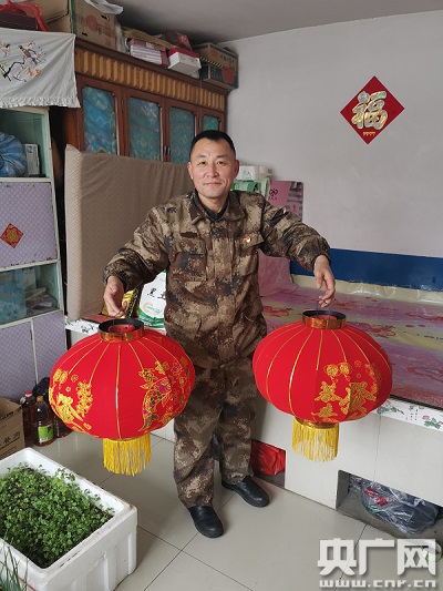 春節(jié)將至,郭景運(yùn)給貧困戶送去新春燈籠(中央廣播電視總臺(tái)央廣記者 馮志遠(yuǎn) 攝)