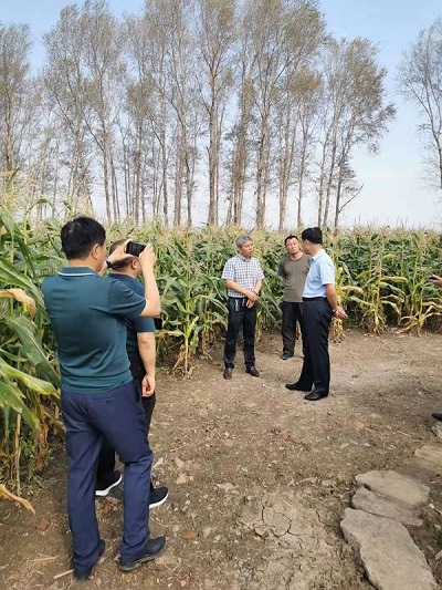 縣里面帶技術(shù)員來(lái)查看玉米長(zhǎng)勢(shì)(央廣網(wǎng)發(fā) 郭景運(yùn)提供)