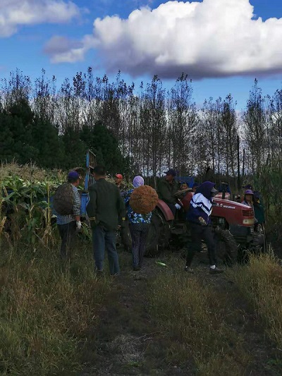貧困戶們?cè)诓僮鳈C(jī)器收獲甜玉米(央廣網(wǎng)發(fā) 郭景運(yùn)提供)