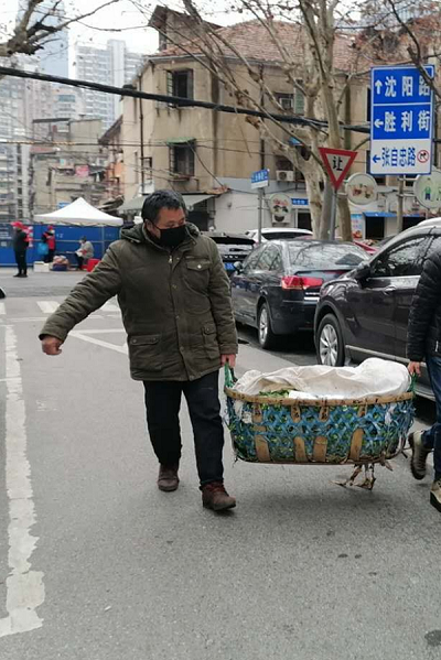 每天早上出門前,杜崎都會(huì)跟附近的老街坊們打個(gè)招呼,問(wèn)一聲,要不要帶點(diǎn)什么。他說(shuō):“免得街坊們?cè)僬疑鐓^(qū),最后還是要我們?nèi)プ。我們要是不往前沖一下,社區(qū)忙不過(guò)來(lái)。社區(qū)總共就幾個(gè)人。我們主動(dòng)一點(diǎn),對(duì)社區(qū)來(lái)說(shuō),也減輕了負(fù)擔(dān)。大家互相幫忙,疫情早一點(diǎn)過(guò)去,我也想早一點(diǎn)上班!
