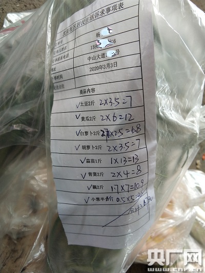 某戶居民委托社區(qū)代買的菜品清單(中央廣播電視總臺(tái)央廣記者 左艾甫 攝)