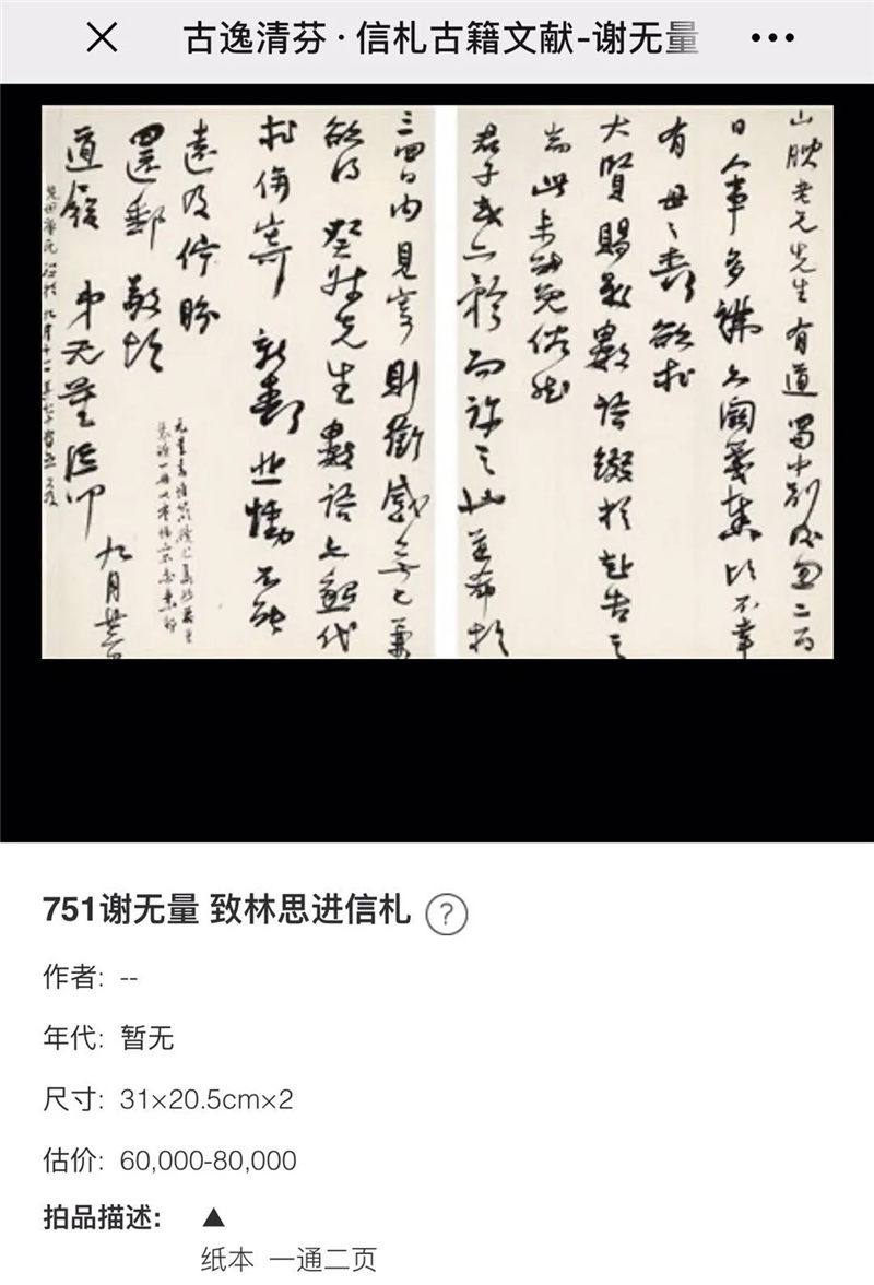 “古逸清芬·信札古籍文獻(xiàn)”專場(chǎng)拍品中,出現(xiàn)了數(shù)十件近代名人致西南名儒林思進(jìn)的信札,官方估價(jià)在1萬(wàn)-8萬(wàn)元不等,這些信函屬于四川省圖書館的館藏文物,應(yīng)存于四川省圖書館。這一消息最初由公眾號(hào)“江上說(shuō)的”發(fā)出,11日下午,中國(guó)之聲記者獨(dú)家聯(lián)系到文章作者江上。