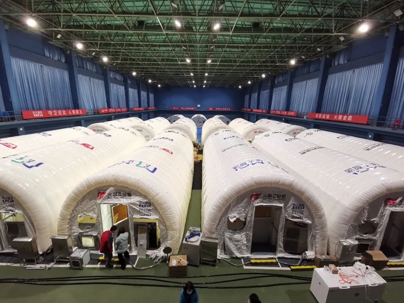 杜玉濤介紹:“這個火眼實驗室(氣膜版)是基于我們當時在武漢建的第一個‘火眼’實驗室的想法。當時武漢的‘火眼’在短時間內(nèi)解決了武漢大量疑似病例堆積的問題,為后面的疫情防控提供了重要的科技力量支撐。但當時的‘火眼’是在一個固定的實驗室里重新裝修設計完成的,我們就想,有沒有一種更新的方法能夠快速搭建實驗室?所以就有了氣膜版“火眼”實驗室的誕生。”