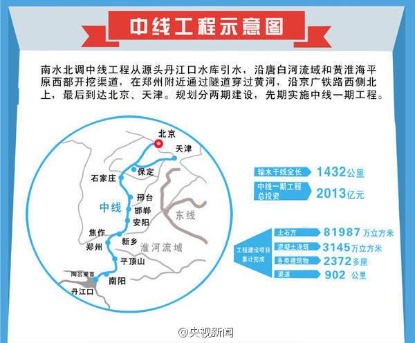 中線一期工程從大壩加高擴(kuò)容后的丹江口水庫引水,沿線開挖渠道直通北京,總長1432公里,工程自2003年開工以來,經(jīng)過10多年的建設(shè)而成。