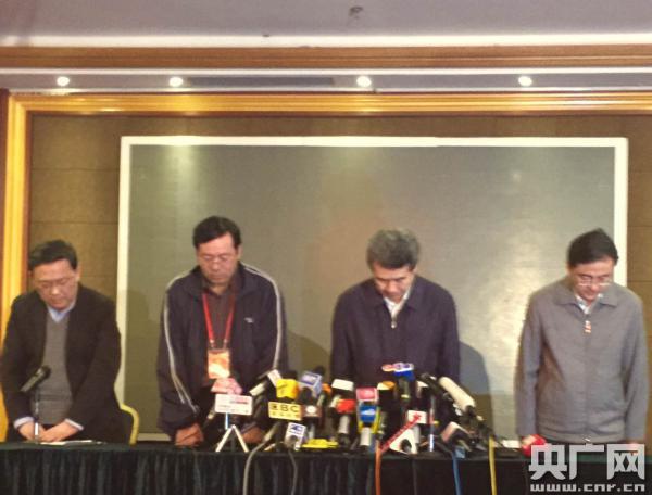 深圳市副市長劉慶生等在發(fā)布會現(xiàn)場為罹難群眾鞠躬默哀