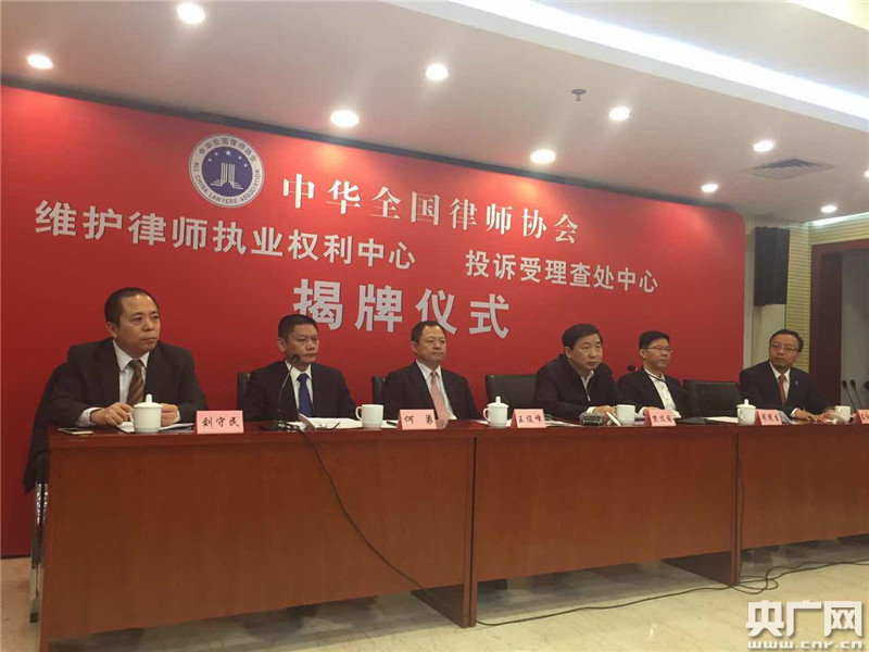 央廣網(wǎng)北京3月24日消息(記者孫瑩)據(jù)中國之聲《央廣新聞》報(bào)道,今天上午,中華全國律師協(xié)會召開2017年首次新聞發(fā)布會,發(fā)布《律師協(xié)會維護(hù)律師執(zhí)業(yè)權(quán)利規(guī)則(試行)》、修訂完善《律師執(zhí)業(yè)行為規(guī)范》、《律師協(xié)會會員違規(guī)行為處分規(guī)則(試行)》,“全國律協(xié)維護(hù)律師執(zhí)業(yè)權(quán)利中心”和“全國律協(xié)投訴受理查處中心”正式掛牌,全國律協(xié)對律師執(zhí)業(yè)權(quán)利維護(hù)、紀(jì)律懲戒、收費(fèi)規(guī)范等熱點(diǎn)問題進(jìn)行回應(yīng)。
