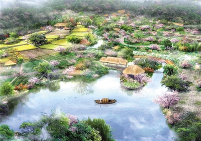 新桃花源,將完全再現(xiàn)陶淵明筆下《桃花源記》所描述的情景和內(nèi)容。為此,景區(qū)優(yōu)化了游覽線路、房屋建筑、道路交通、水體景觀以及植物配比等,還原1000多年前寧?kù)o和諧、與世無(wú)爭(zhēng)的世外桃源詩(shī)畫生活。