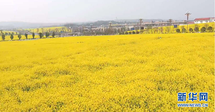一列列動(dòng)車從金黃色的花海中駛過(guò),宛如開(kāi)往春天的高鐵。新華網(wǎng) 向進(jìn) 攝