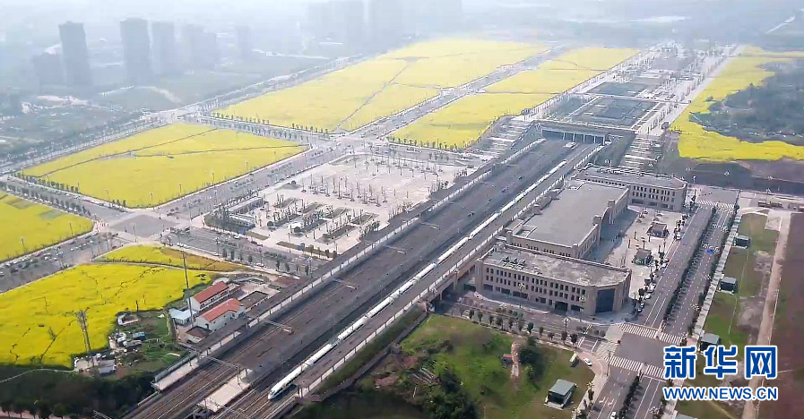 3月以來(lái),重慶復(fù)盛高鐵站周邊的千畝油菜花海意外走紅。拍攝在花海中穿行的高鐵動(dòng)車,成為許多市民的春游新選擇。