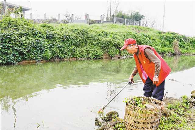 陽春三月,春寒料峭、乍暖還寒。3月11日,早上7點(diǎn)過,梁灘河薄霧繚繞,土主鎮(zhèn)力量村夏家壩社的巡河護(hù)衛(wèi)隊(duì)員王德剛便拿起清漂工具,推著自行車踏出家門,開始了一天的巡河和河道垃圾清理工作。