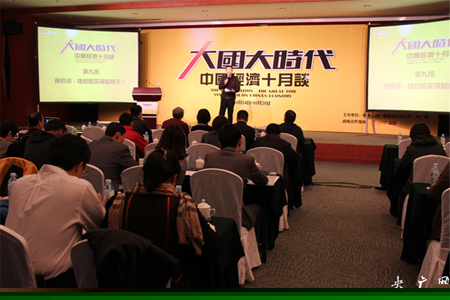 10月24日,由中央人民廣播電臺經(jīng)濟之聲、央廣網(wǎng)主辦的《大國大時代----中國經(jīng)濟十月談》系列時事報告會之九“房價談”,在廣電國際酒店舉行。今天的主題是《房價談:啥時能買得起房子?》。圖為報告會現(xiàn)場。(央廣網(wǎng) 于琦/攝)