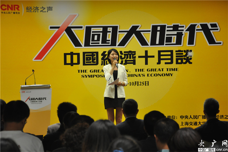 10月20日,由中央人民廣播電臺(tái)經(jīng)濟(jì)之聲、央廣網(wǎng)主辦的《大國(guó)大時(shí)代----中國(guó)經(jīng)濟(jì)十月談》系列時(shí)事報(bào)告會(huì)之五“貨幣談”,在位于中國(guó)人壽中心的上海交通大學(xué)上海高級(jí)金融學(xué)院舉行。今天的主題是《貨幣談:大國(guó)的錢怎么辦?》。圖為經(jīng)濟(jì)之聲主持人 梁靖(央廣網(wǎng) 李靜/攝)