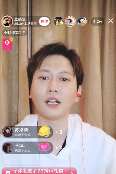 3月20日,抖音直播迎來了德云社知名相聲演員孟鶴堂直播首秀。意料之中的是,此次首播效果十分喜人,孟鶴堂在直播期間甚至還驚嘆“觀眾留言太多,滾動太快,導(dǎo)致都看不清大家在說什么”;另外他還多次搞笑勸說觀眾不要刷禮物,原因是開直播時,公司會給發(fā)工資……可以說整個直播期間,孟鶴堂將相聲演員所具有獨特的喜感與樂趣展現(xiàn)得淋漓盡致。