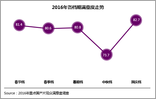 2016年國慶檔以15.79億元票房、5083萬人次的成績落幕。票房雖然較2015年“史上最強國慶檔”的18.6億元票房有差距,但觀眾滿意度卻不降反升,足以顯見,中國電影界追求創(chuàng)作質(zhì)量的努力正在逐步顯現(xiàn)成果。