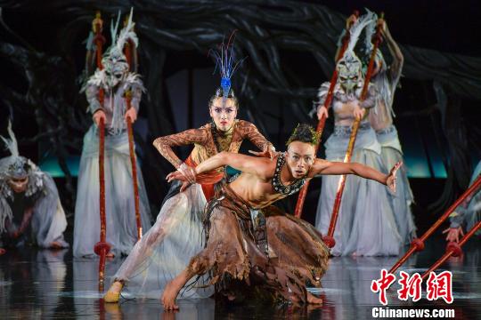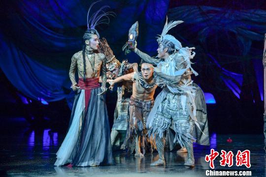 中新網(wǎng)?4月12日電 (洪堅鵬)由海南省保亭黎族苗族自治縣與中國煤礦文工團(tuán)共同創(chuàng)作的大型現(xiàn)代民族舞劇《甘工鳥》12日晚在海口首演,將黎族人與鳥的傳統(tǒng)故事搬上舞臺,并以唯美的演技,精彩炫目的舞臺、燈光效果呈現(xiàn)出來。