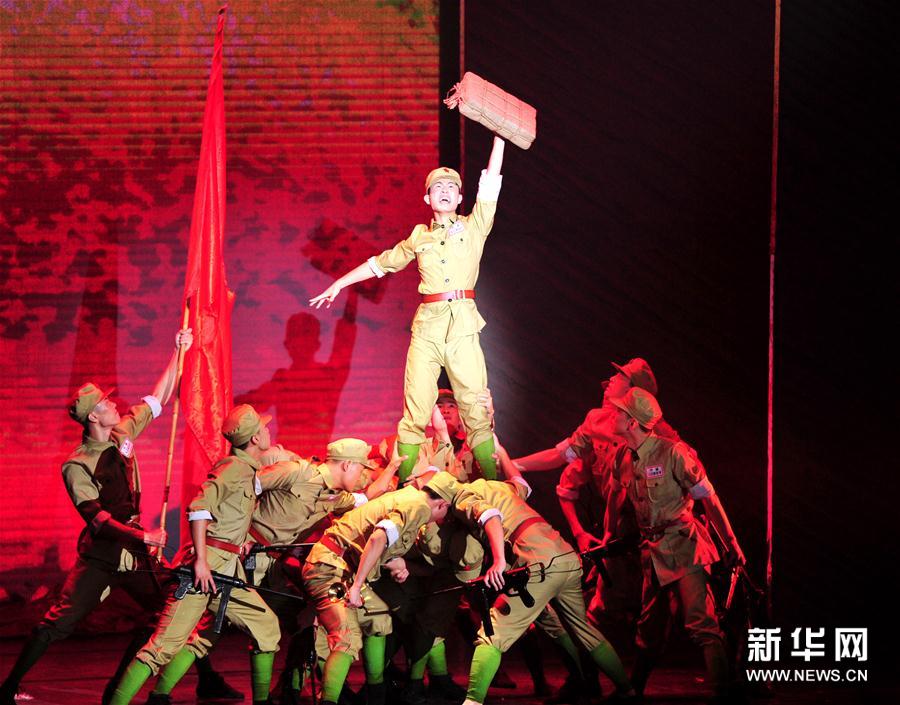 7月29日,演員們在表演舞蹈《解放》。當日,黔陜冀紀念中國人民解放軍建軍90周年主題文藝演出在貴陽市舉行。此次文藝演出由貴州、陜西和河北三省文藝團體聯(lián)袂打造,通過豐富多彩的節(jié)目,反映中國共產(chǎn)黨帶領(lǐng)紅軍進行長征,建立紅色根據(jù)地,帶領(lǐng)人民軍隊開展抗日戰(zhàn)爭解放戰(zhàn)爭,實現(xiàn)民族獨立、國家富強的偉大功績。新華社記者 陶亮 攝