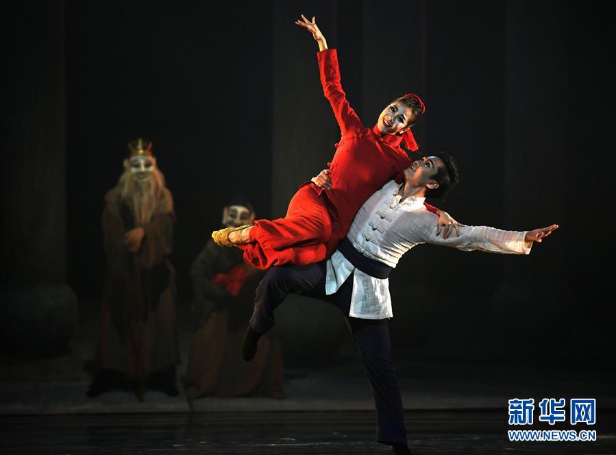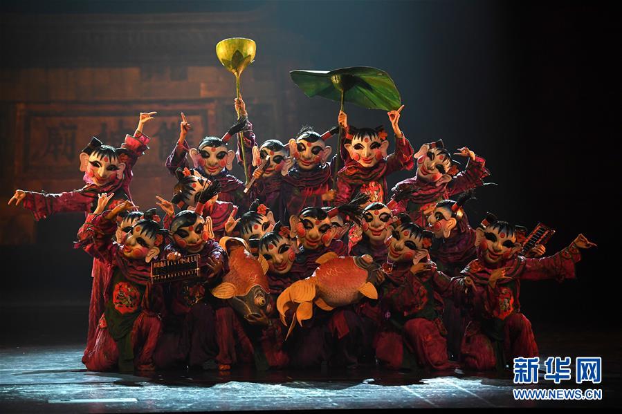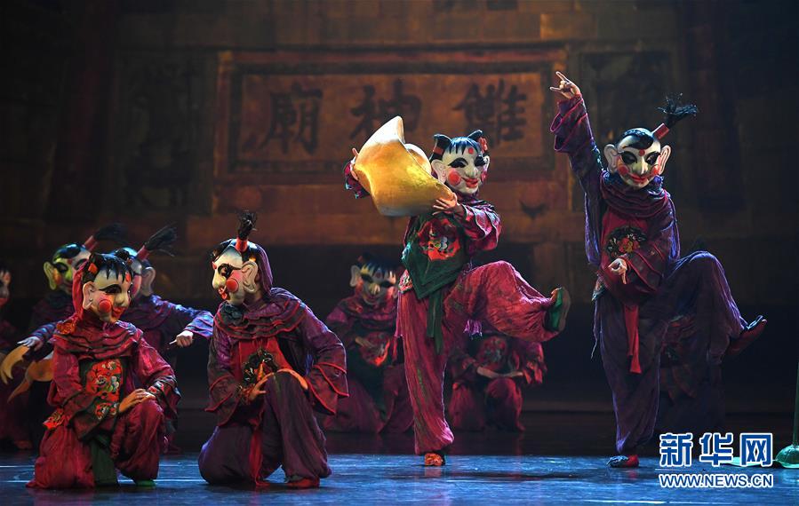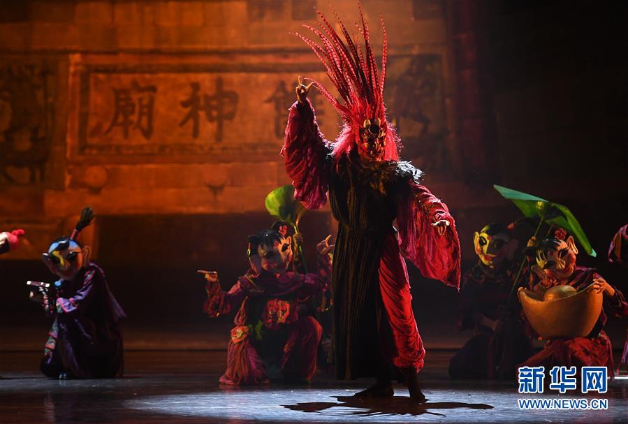 7月12日,演員在表演舞劇《儺情》。 7月12日,由北京舞蹈學(xué)院青年舞團(tuán)、江西省南豐縣石郵村儺班聯(lián)合主演的非物質(zhì)文化遺產(chǎn)研創(chuàng)舞劇《儺情》在位于南昌市的江西藝術(shù)中心上演。全劇圍繞中國古老的“儺”文化,以舞蹈獨(dú)有的方式生動詮釋了中國傳統(tǒng)文化精神的源遠(yuǎn)流長。新華社記者 萬象 攝 -