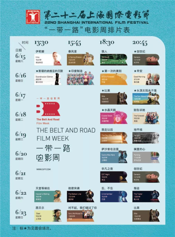 從2015年專設(shè)“絲綢之路”展映單元以來,上海國際電影節(jié)積極響應(yīng)“一帶一路”倡議,每年創(chuàng)新升級,擴(kuò)大與“一帶一路”沿線國家電影人的交流和交往。去年電影節(jié)設(shè)立“一帶一路”電影周,并于電影節(jié)期間成立了由29個國家31個電影節(jié)機(jī)構(gòu)組成的“一帶一路”電影節(jié)聯(lián)盟。今年,聯(lián)盟又將迎來7位新成員,“一帶一路”電影周也迎來新的一年。