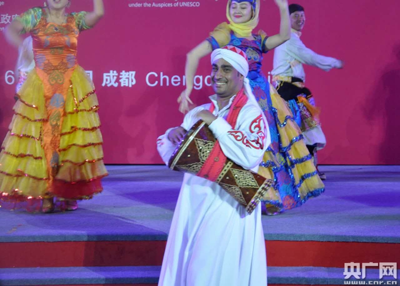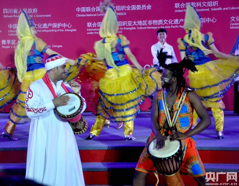 世界各地的傳統(tǒng)歌舞藝術家同臺演出《五洲情》。 央廣網(wǎng)北京6月10日消息 6月10日,“文化和自然遺產(chǎn)日”全國非物質文化遺產(chǎn)主場活動在四川成都國際非遺博覽園啟動。 本屆非遺節(jié)將以“世界風、中華節(jié)、中華戲、中華藝”為主線,統(tǒng)籌統(tǒng)攬各項節(jié)會活動。來自全國及世界各地的傳統(tǒng)歌舞、說唱藝術,以及民族節(jié)慶項目將在這里展演;除了來自世界各地的精彩表演之外,同時,來自15個國家的傳統(tǒng)手工藝項目也在現(xiàn)場進行展示。