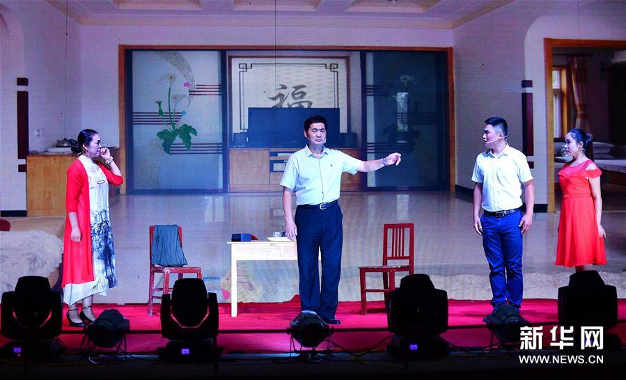 9月7日晚,河南濮陽精準扶貧文藝巡演活動走進清豐縣馬村鄉(xiāng)白馬楊村,演員在表演四平調(diào)《不講排場又如何》。為充分發(fā)揮文藝作品在扶貧攻堅工作中的“扶志”和“扶智”作用,河南濮陽圍繞扶貧攻堅主題積極組織文藝創(chuàng)作,廣泛開展文藝宣傳活動。8月中旬至10月中旬,濮陽將在全市五縣一區(qū)開展文藝巡演活動100場次。新華社記者馮大鵬攝
