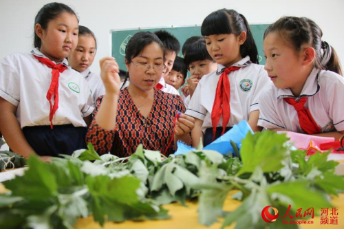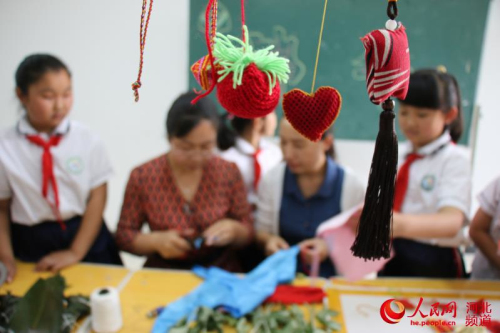 圖為6月4日河北省邯鄲市廣平縣第二實(shí)驗(yàn)小學(xué)學(xué)生在老師的幫助下縫制香囊。