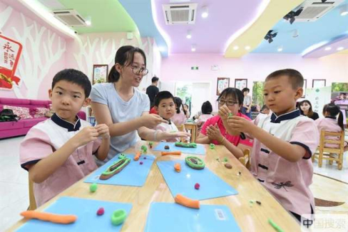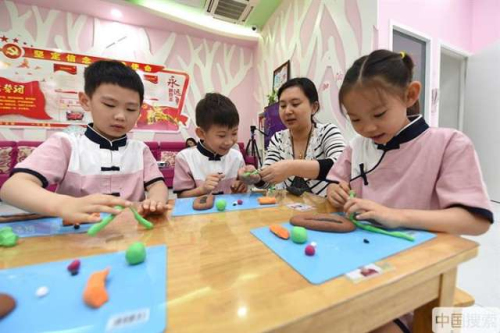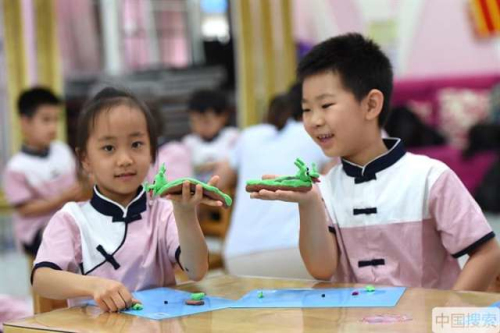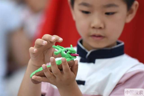 2019年6月4日,端午節(jié)將至,北京東城區(qū)崇文第三幼兒園少年兒童自己挑選材料,自己設(shè)計龍頭,親手感觸面人,并操作經(jīng)手工捏,搓,揉,掀等面塑工序制作端午龍舟,在實(shí)踐中塑造“賽龍舟”的熱鬧景象,體會傳統(tǒng)節(jié)日意義。