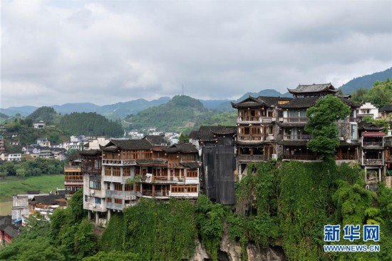 湖南省永順縣芙蓉鎮(zhèn)壯觀的吊腳樓建筑群(2020年5月15日攝)。新華社發(fā)(陳思汗 攝)