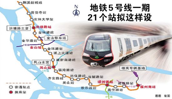 福州地鐵5號(hào)線一期擬設(shè)21個(gè)站點(diǎn) 全長(zhǎng)約27.2公里