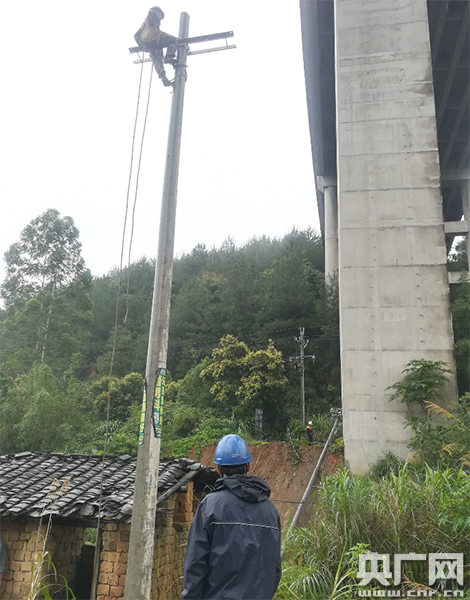 受連續(xù)強(qiáng)降雨影響,6月11日晚,永定多地發(fā)生了不同程度的山體滑坡、塌方,導(dǎo)致部分供電線路不同程度受損。6月12日凌晨1時(shí)許,在撫市鎮(zhèn)基安村河道旁邊,10千伏基冷線所處路基多處塌方,導(dǎo)致基冷線21號(hào)桿橫懸在河面上,扯動(dòng)了前后兩根電桿傾斜。為保證客戶用電需求,6月12日凌晨2點(diǎn),該公司撫市供電所搶修人員將10千伏基冷線轉(zhuǎn)由基中聯(lián)絡(luò)線供電!笆紫韧ㄟ^鋼絲繩掛住電桿,再用腳樁、鋼絲繩、鏈條固定,防止電桿繼續(xù)往下滑。并在保證安全的情況下,把線路一條一條地拉上來。”撫市供電所副所長(zhǎng)黃偉民介紹道。由于線路沒有斷裂,搶修人員經(jīng)過現(xiàn)場(chǎng)勘察、布置安全措施后,決定兵分兩路,一邊新立電桿,一邊組織人員將橫懸的21號(hào)桿的3條供電線路取下掛接在新電桿上。只見搶修人員卷起褲腳,一步一步艱難地蹚過湍急的河流到達(dá)對(duì)岸,其中一名搶修人員爬上桿頭施工作業(yè),另外一名人員站在水中配合桿上的人員取下瓷瓶、橫擔(dān)以及供電線路;其他人員在路面上布置安全措施、拉穩(wěn)繩索、固定腳樁……搶修工作緊張而有序。雨水持續(xù)不斷,搶修人員衣服已經(jīng)濕透,早已分不清那是汗水還是雨水。