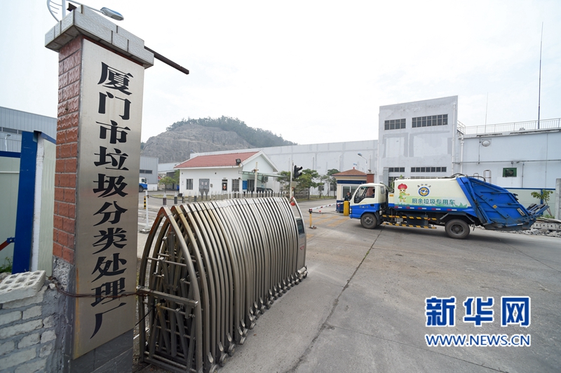 3月29日,一輛廚余垃圾專用車駛進(jìn)廈門市垃圾分類處理廠。 新華社記者姜克紅攝 -