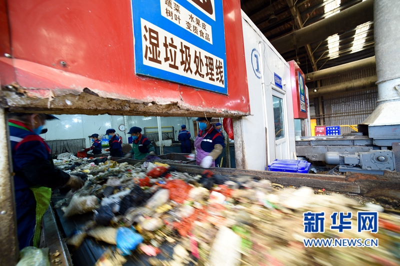 3月29日,廈門市垃圾分類處理廠的工人在對廚余垃圾進(jìn)行初步分揀。 新華社記者姜克紅攝 -