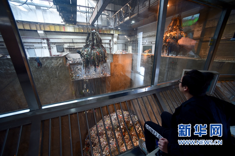3月28日,廈門市后坑垃圾焚燒發(fā)電廠工人在操作儀器抓運垃圾進(jìn)焚燒爐燃燒發(fā)電。 新華社記者姜克紅攝 -