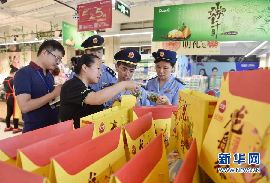 5月24日,在福州市臺江區(qū)一家超市,“四風”督查組人員在了解在售粽子是否有過度包裝現(xiàn)象,并檢查提貨記錄。端午節(jié)前,福建省福州市紀檢監(jiān)察機關(guān)聯(lián)合市場監(jiān)督管理等部門,抽調(diào)人員組成“四風”督查組,加強對登記注冊的商場超市、賓館酒店、煙酒門市等場所開展集中督查,重點檢查消費發(fā)票和購物清單,及時報送發(fā)現(xiàn)的疑似“定點消費”“使用公款定期支付”等線索,多措并舉嚴防“四風”反彈。新華社記者 宋為偉 攝